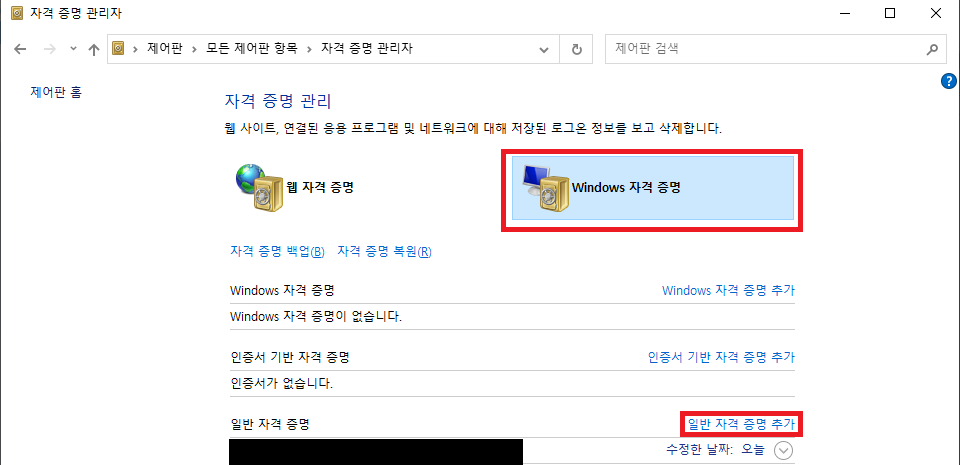 일반 자격 증명 추가를 누르면 창이 뜨는데 주소 앞에 git: 을 써주자